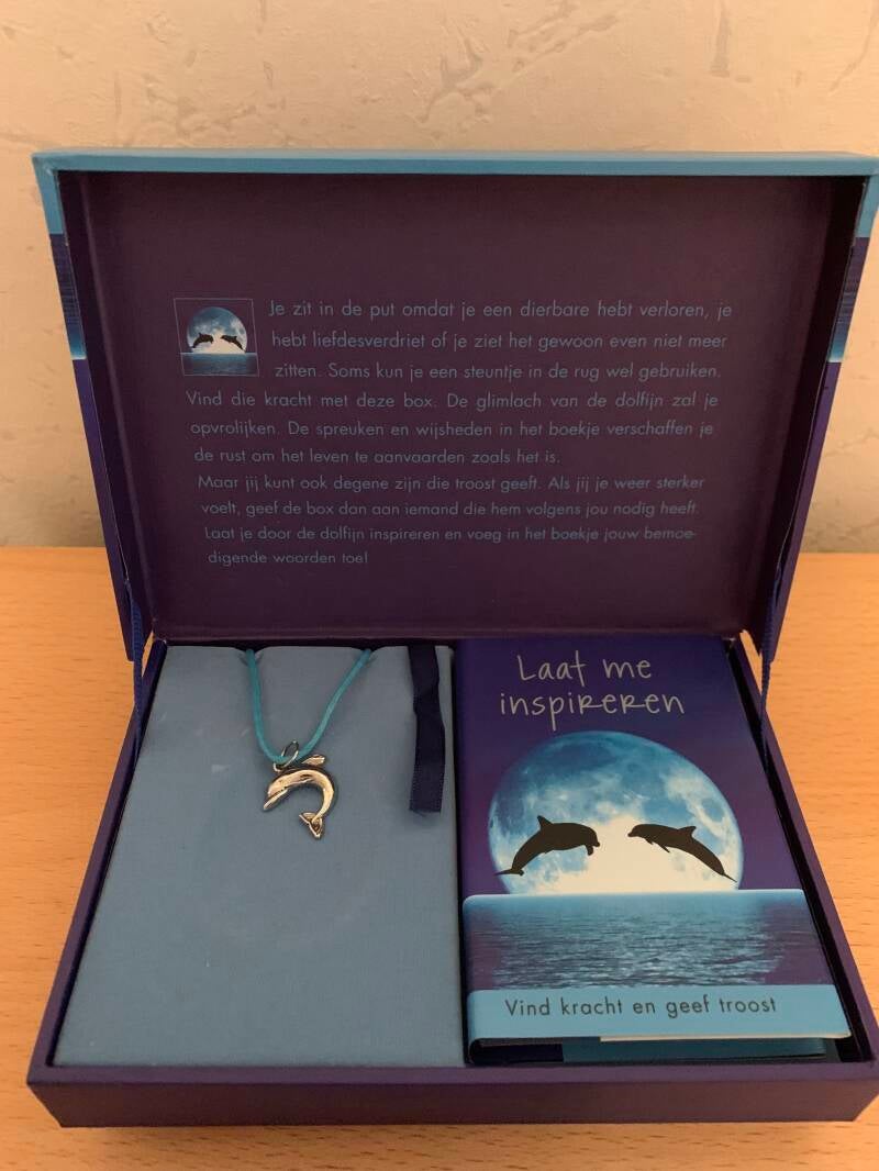 Het is een doosje met een kettinkje (dolfijntje) en